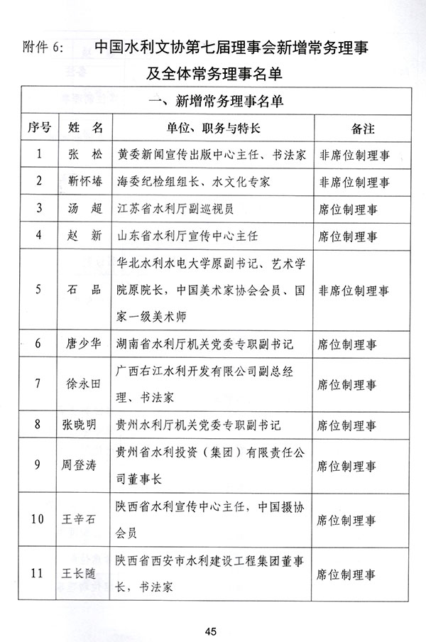 中國水利文協第七屆會員代表大會二次會議已于2018年4月24日在武漢召開。會議表決通過了第七屆理事會新增理事及常務理事名單。西安市水利建設工程集團有限公司被吸收為新增單位會員常務理事單位,公司董事長王長隨同志被選舉為協會席位制理事。